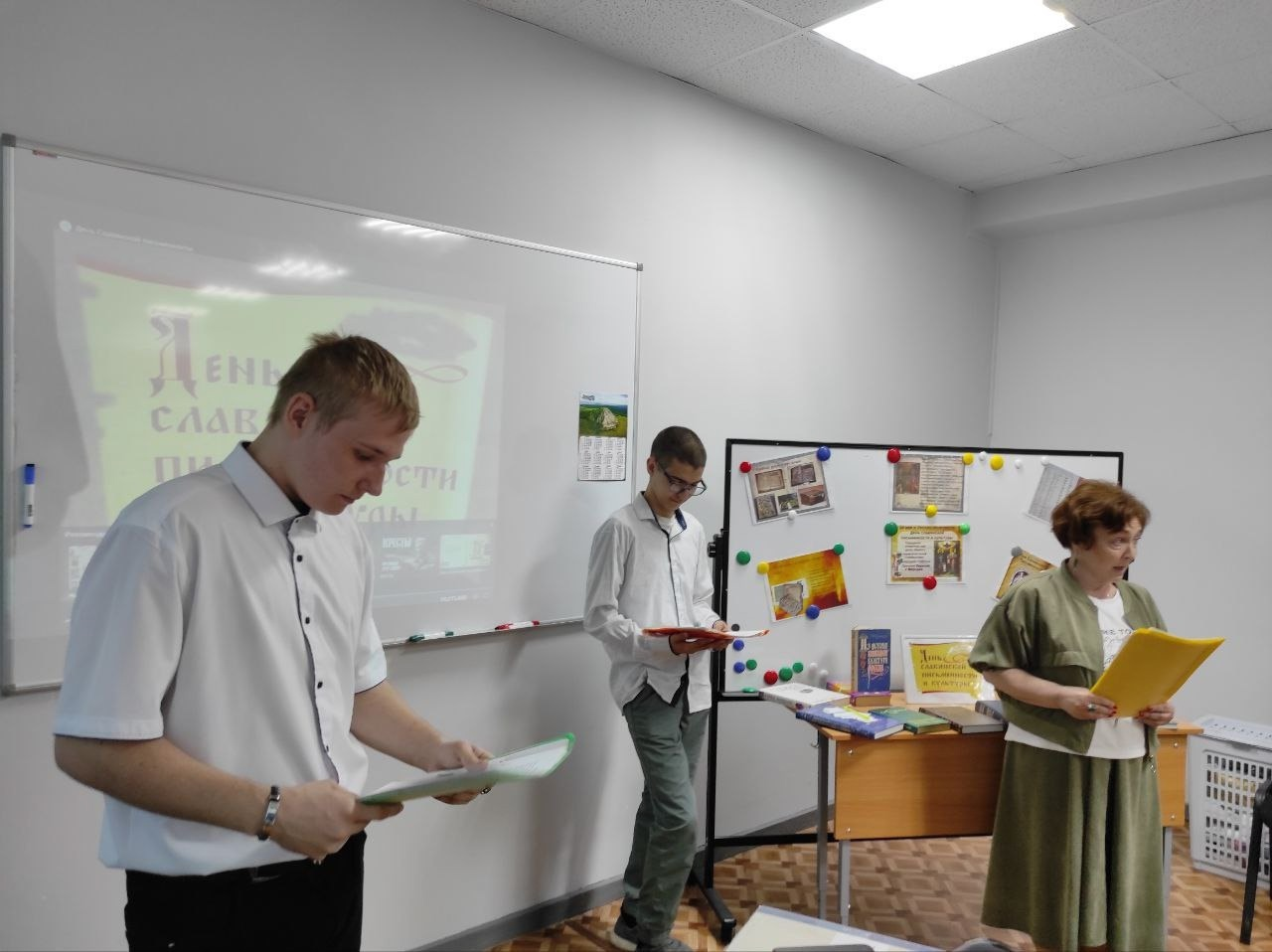 В преддверии празднования Дня славянской письменности и культуры студенты группы 2Сл1 вместе с преподавателем русского языка и литературы Ингой Павловной Замараевой в рамках профориентационной работы провели для обучающихся 8 класса МБОУ “Гимназия №2” историческое рандеву «Азбука, прошедшая через века». Участники мероприятия узнали, как и где возникла письменность, когда и где появилась первая печатная книга, каким долгим был путь от глиняной таблички до печатной странички, а также познакомились с создателями славянской письменности, равноапостольными святыми Кириллом и Мефодем. Далее школьникам предложили вспомнить пословицы о книге и чтении и принять участие в викторине «Всеведы».В конце мероприятия ребята были награждены сладкими призами.