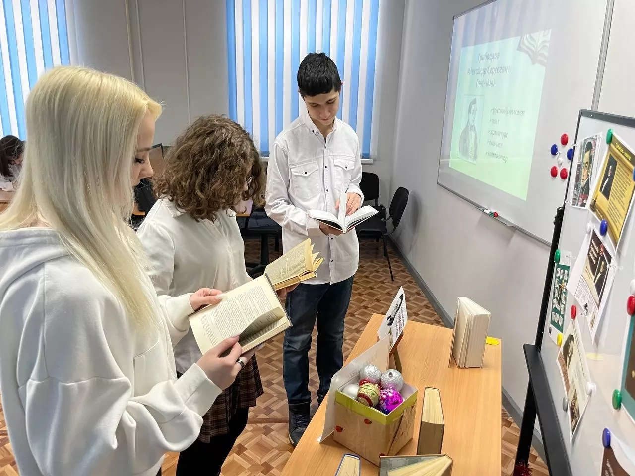 Первокурсникам рассказали о самых ярких моментах из жизни русского писателя. Ребята узнали, что Грибоедов в 11 лет стал студентом словесного отделения философского Московского университета, где он изучил греческий, латинский, персидский, арабский и турецкий языки, участвовал в войне 1812 года, дуэли и подозревался в принадлежности к декабристам.