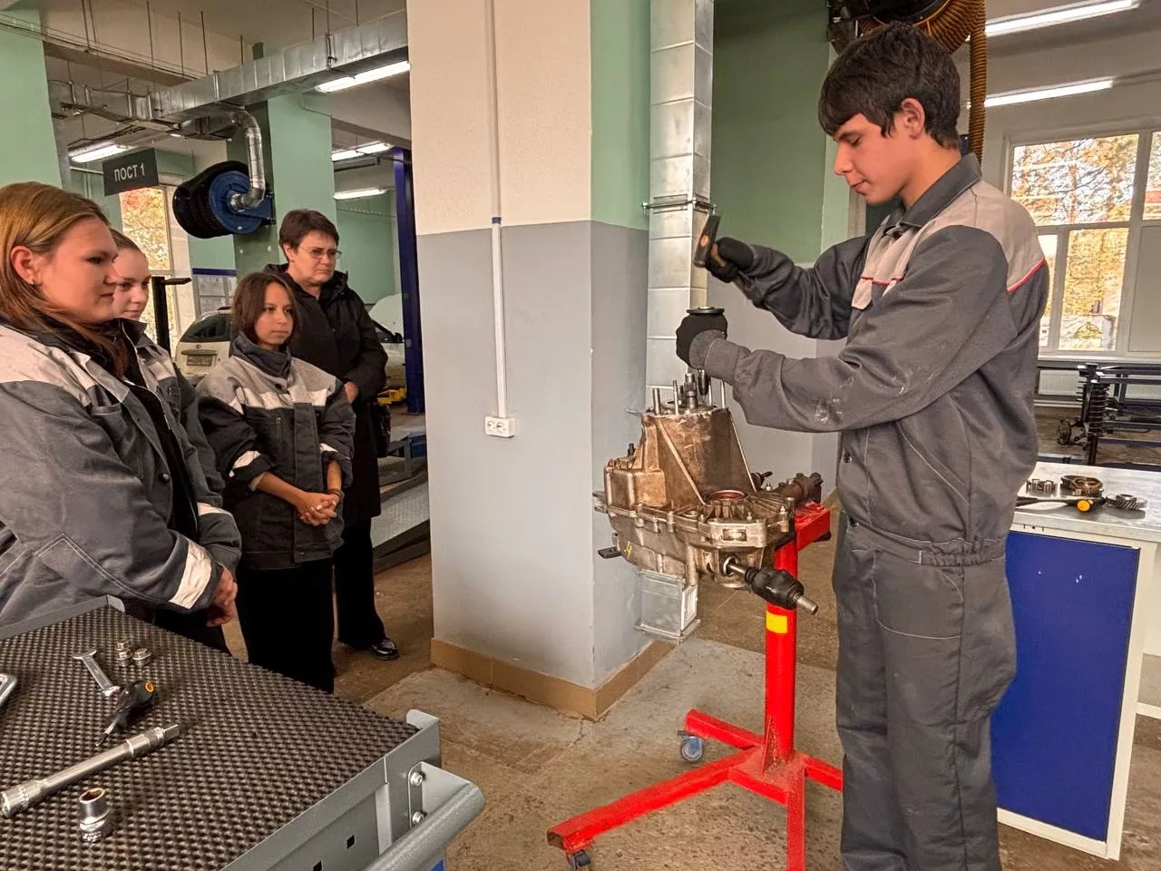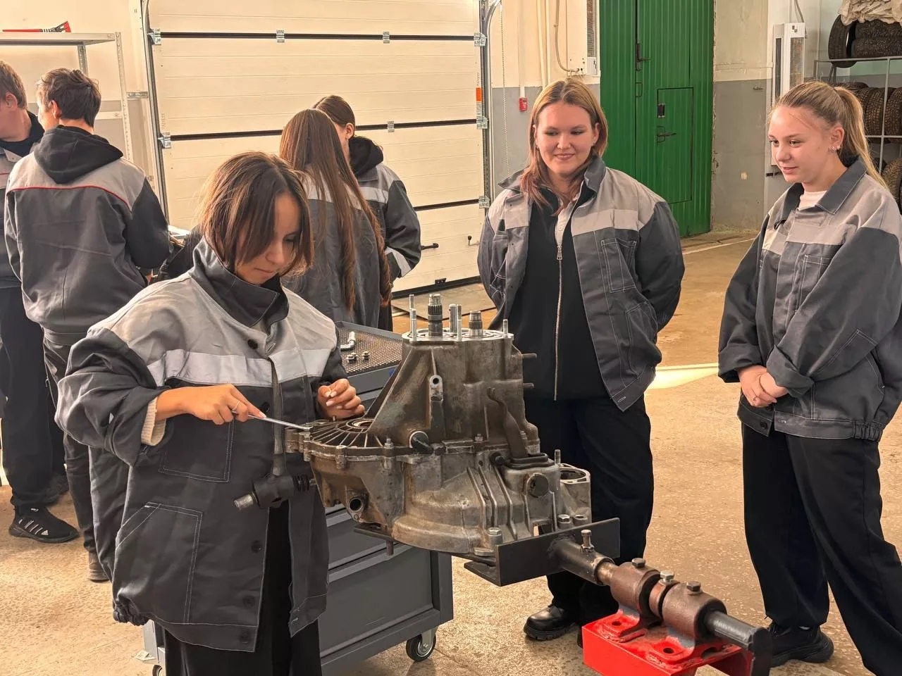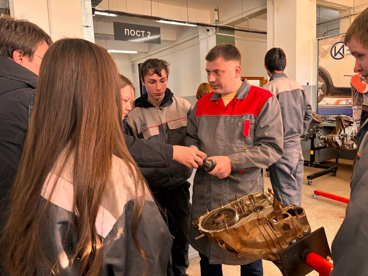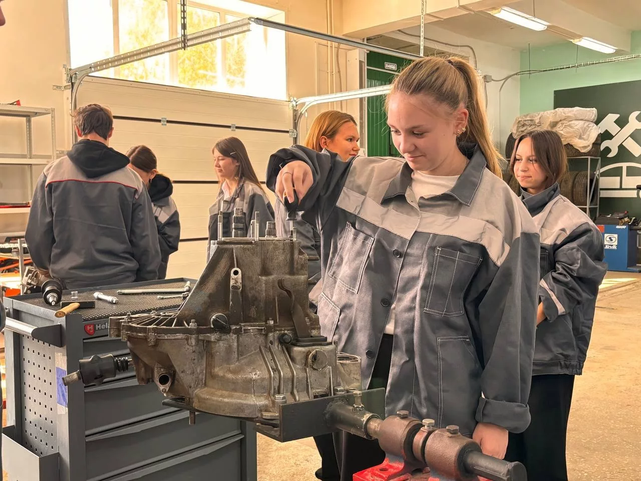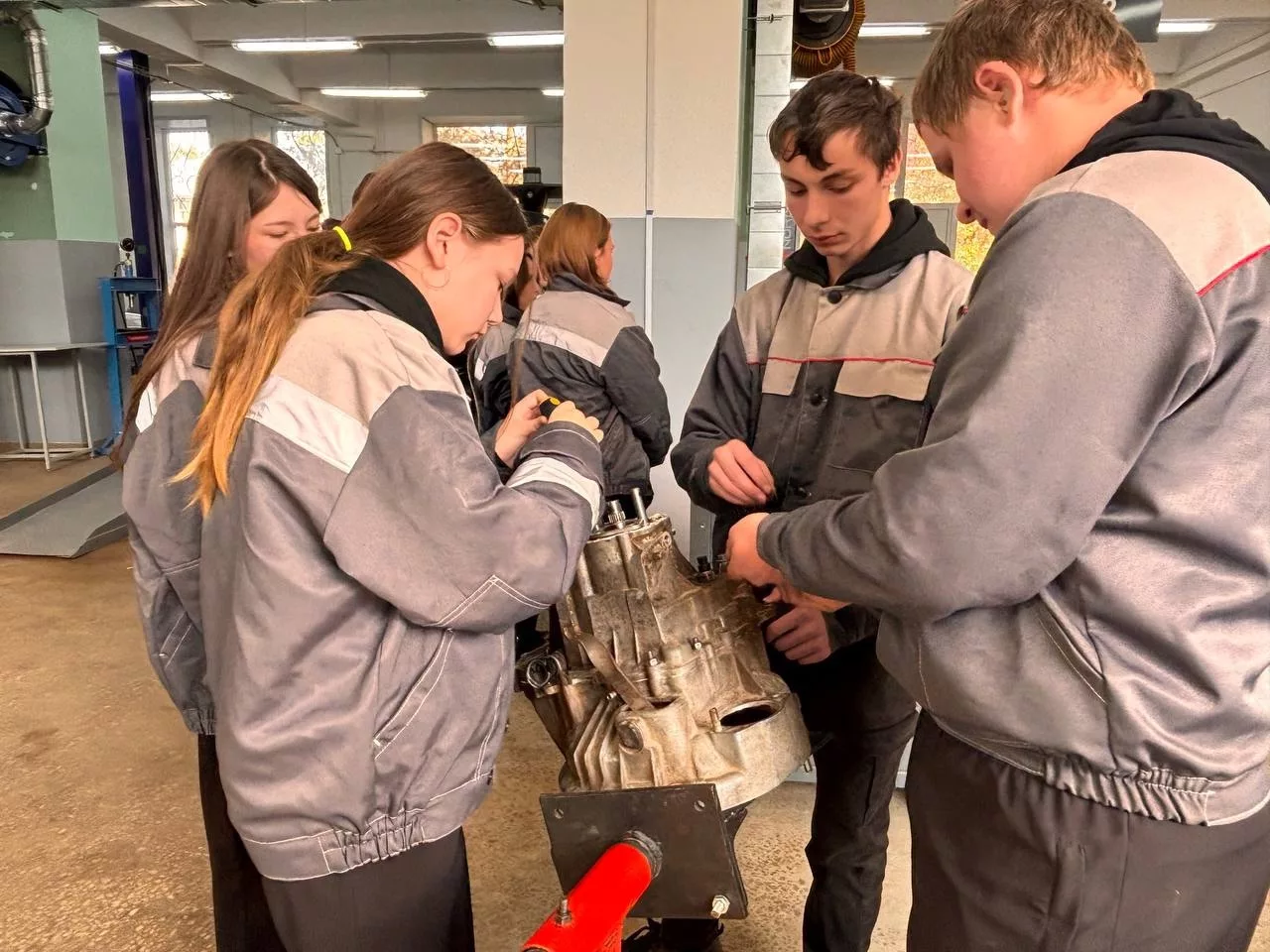 На профессиональной пробе школьники познакомились с профессией Слесарь по ремонту автомобилей. Ребятам было предложено поучаствовать в процессе сборки и разборки коробки передач автомобилей.