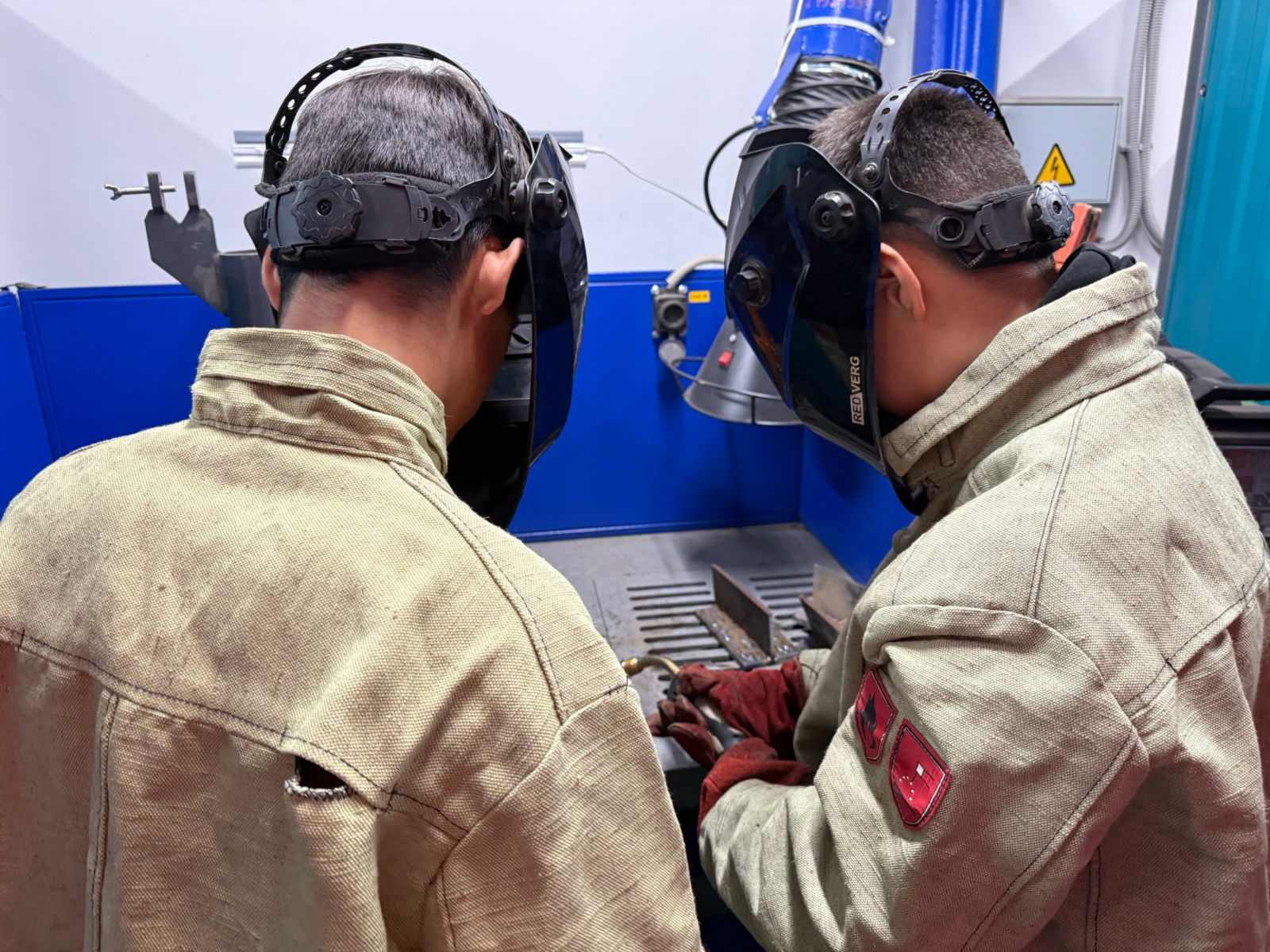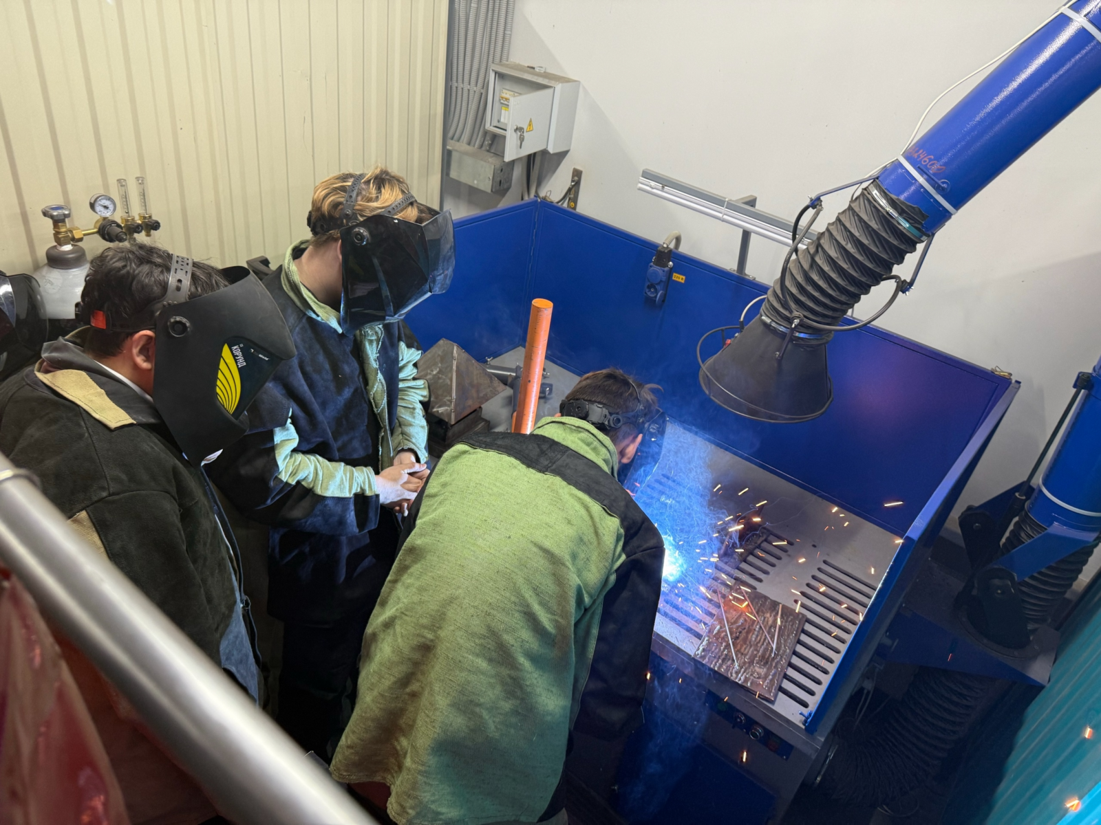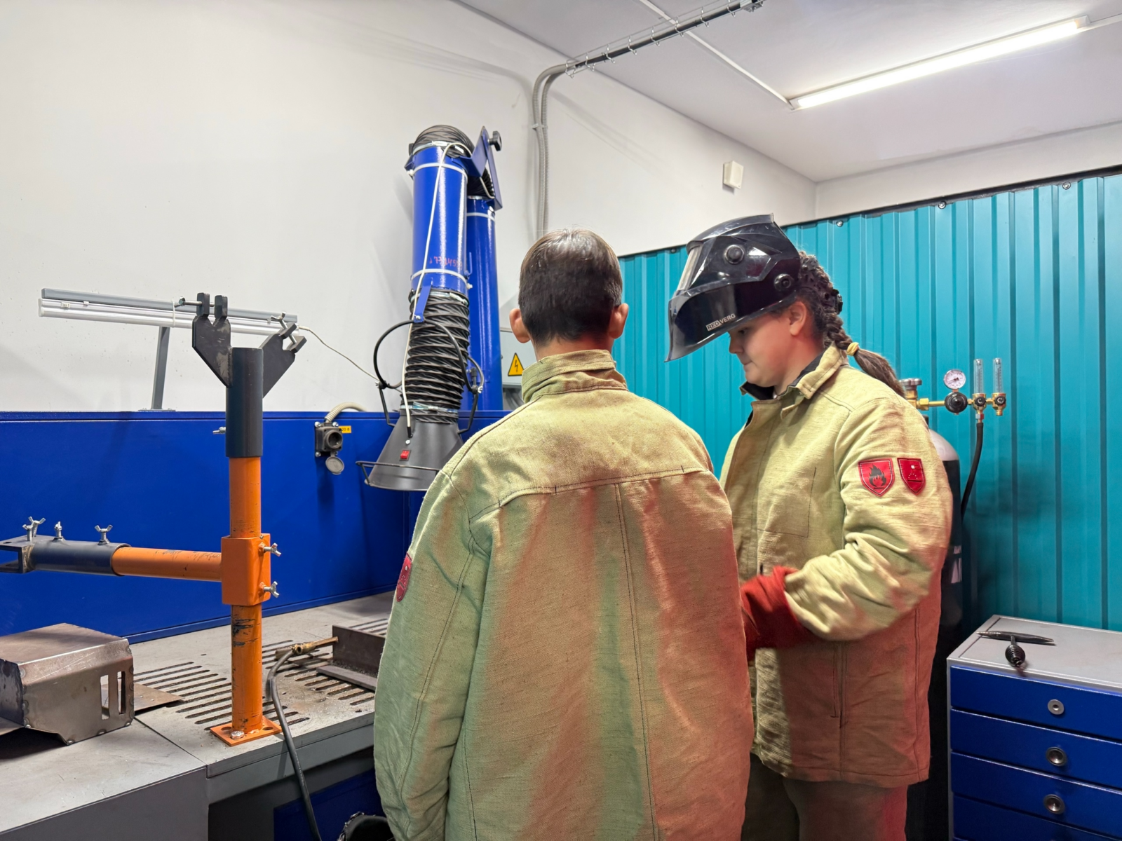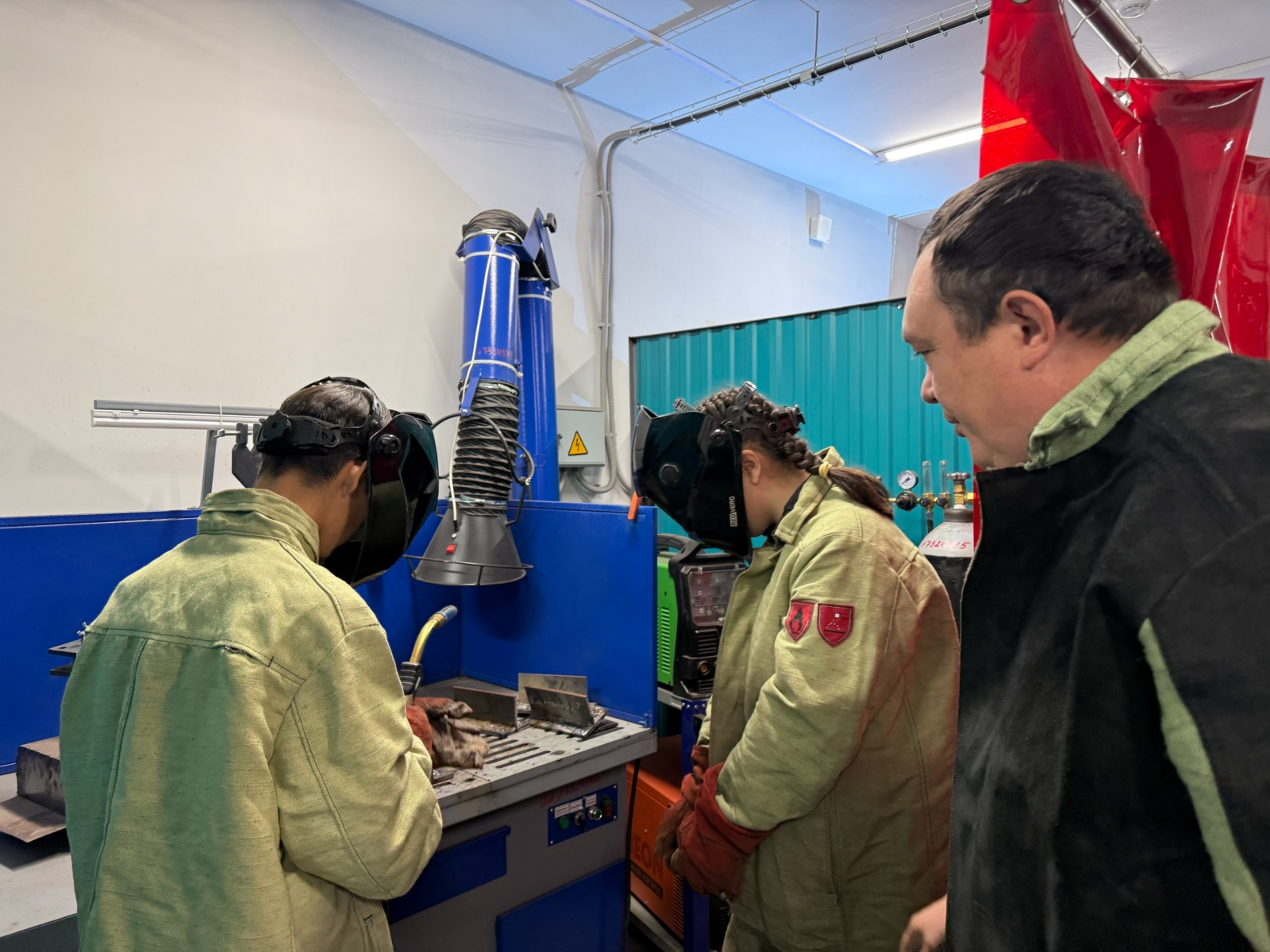 Наставник профессиональной пробы Я.М. Бикбулатов объяснил, что для выполнения сварки необходимо выполнить подготовительные операции, такие как зачистка металла в рабочей зоне, укладка заготовок под нужным углом с сохранением необходимого размера зазора, фиксация элементов прихватками. Школьники попробовали выполнять угловые соединения, проварить тавровое соединение.