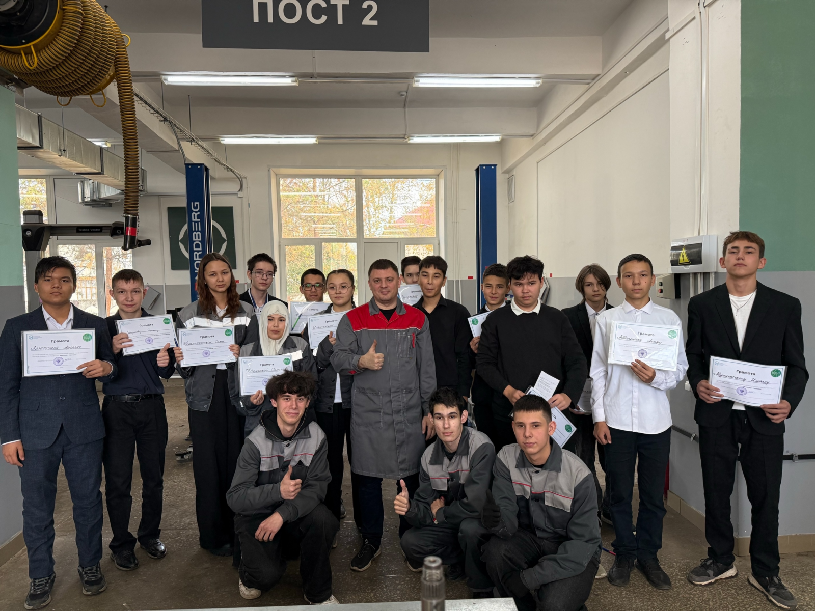 После проведения профессиональной пробы школьники получили сертификаты участника проекта «Билет в будущее» по профессии «Слесарь по ремонту автомобилей».
