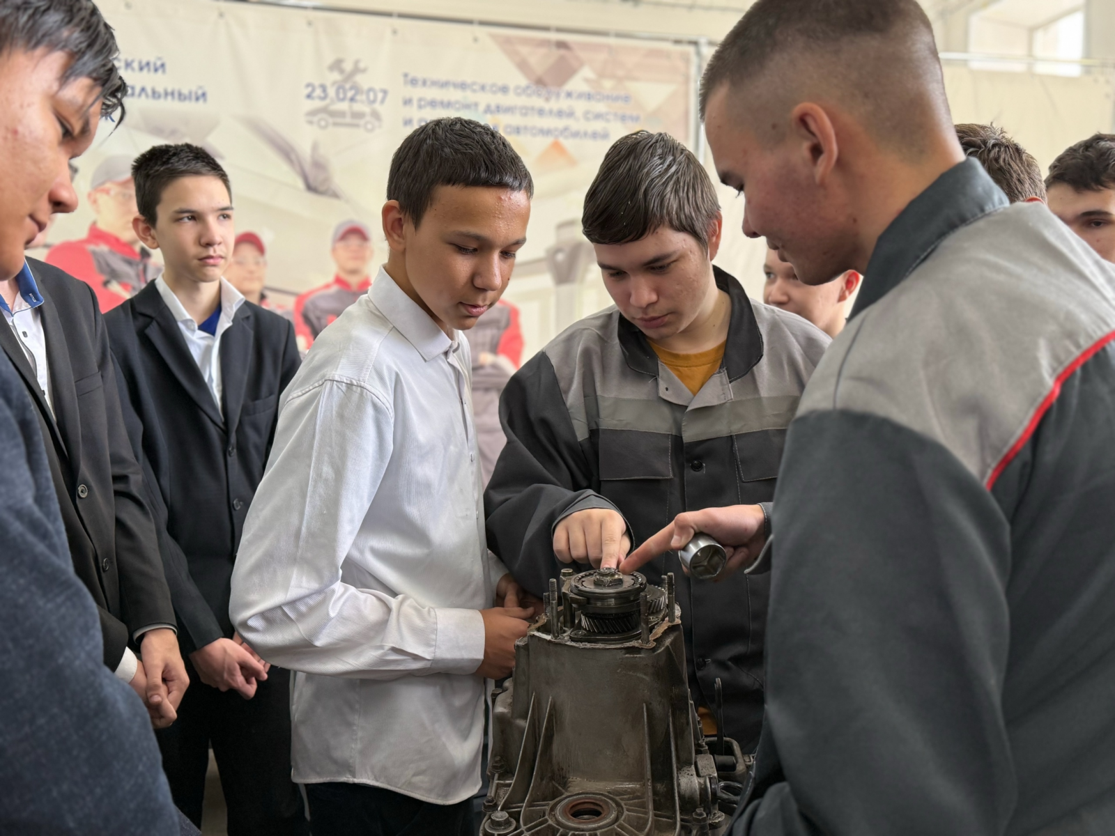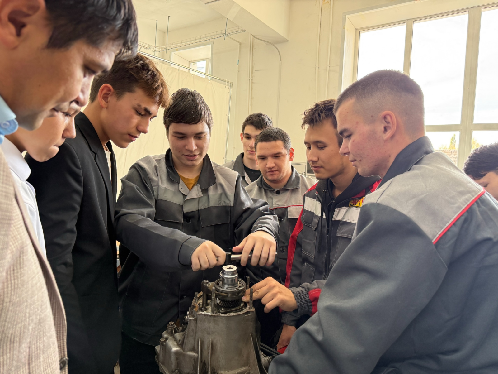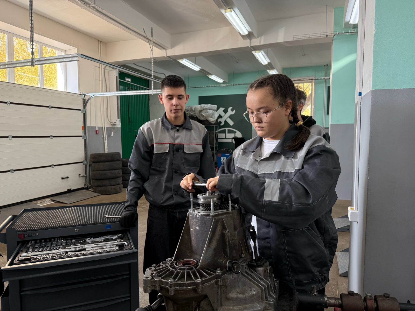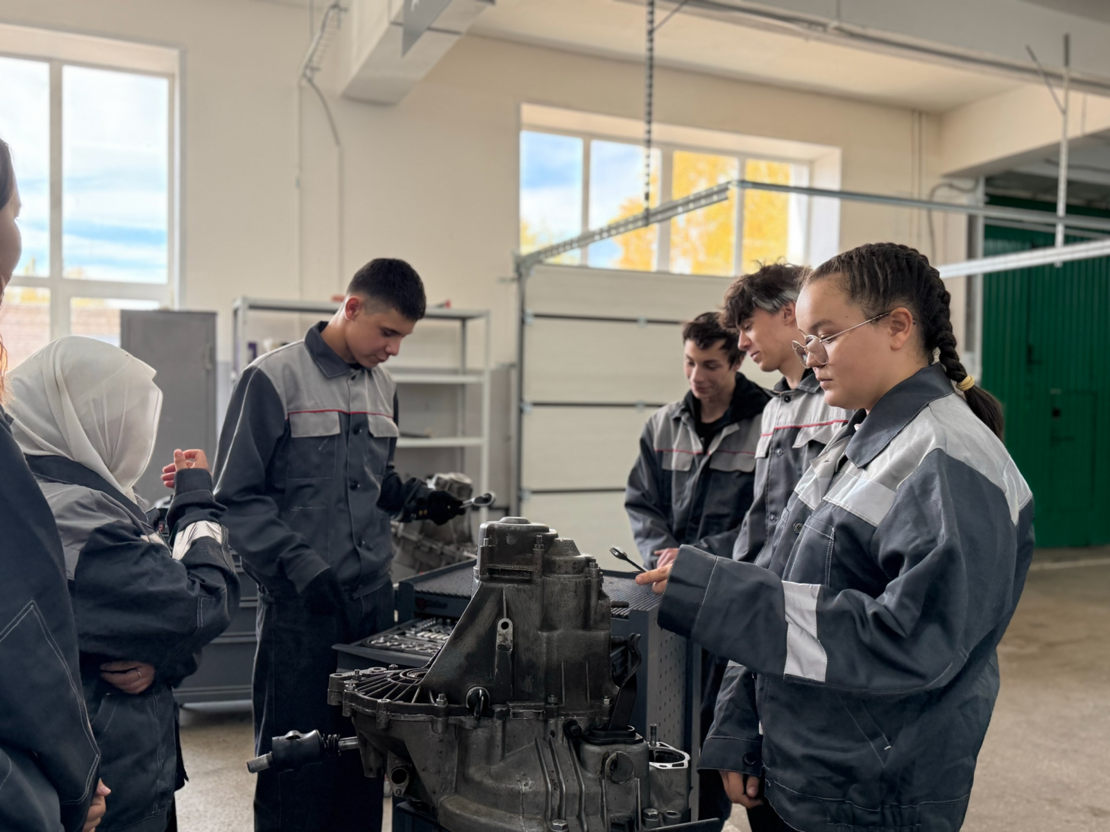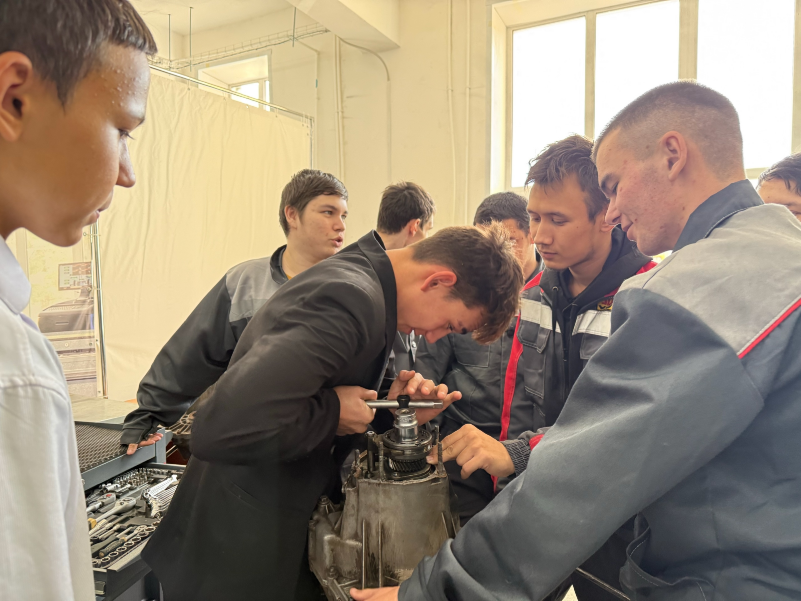 На профессиональной пробе школьники познакомились с профессией Слесарь по ремонту автомобилей. Ребятам было предложено поучаствовать в процессе сборки и разборки коробки передач автомобилей.