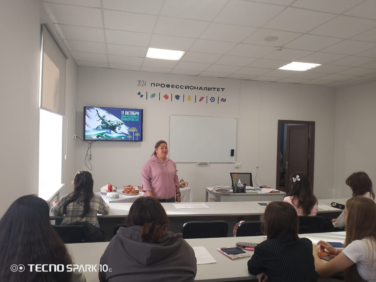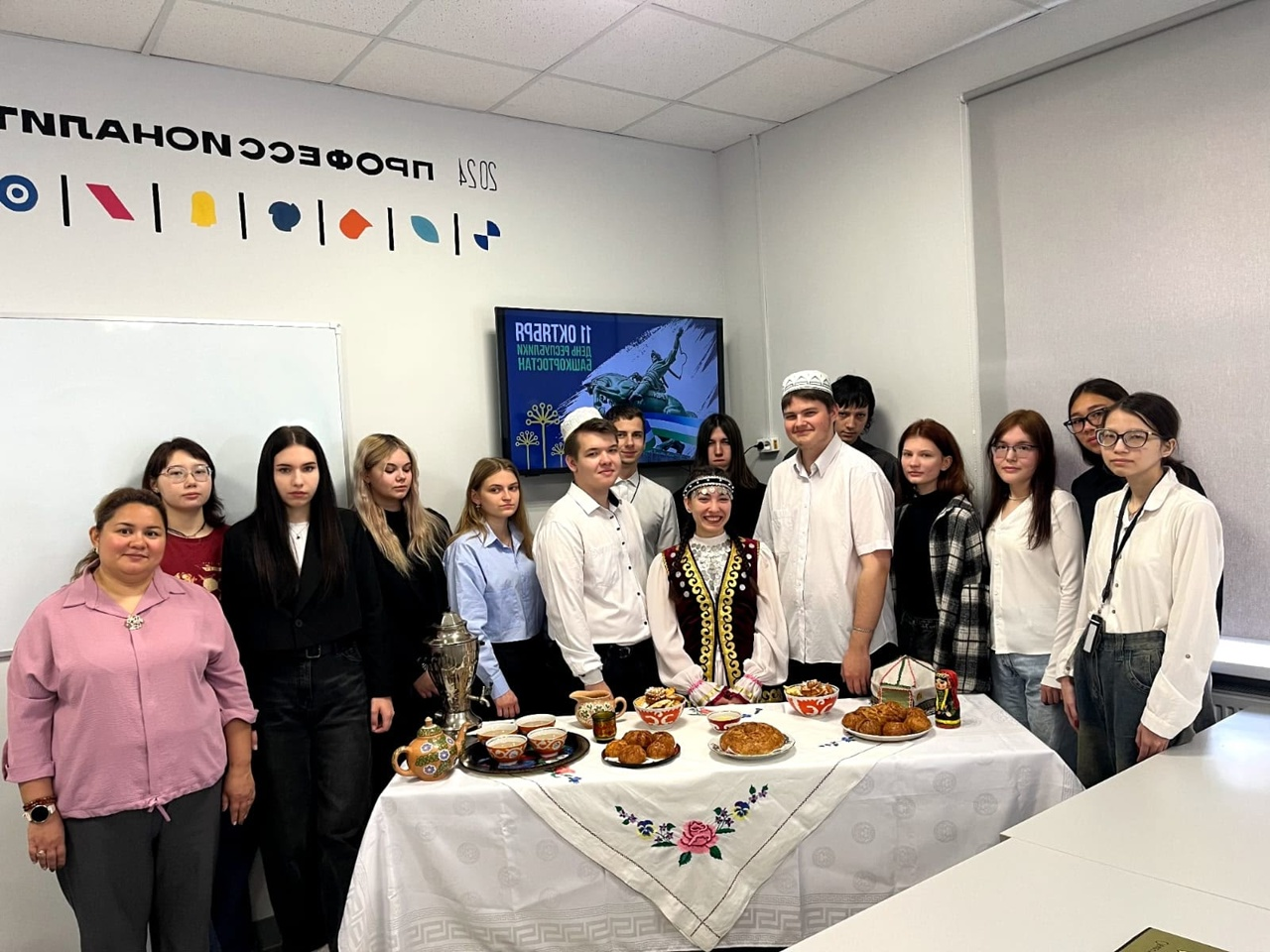 В честь дня Республики Башкортостан в нашем колледже прошли мероприятия. Группы 3пк1 готовили национальные блюда под руководством кл. рук Нигматуллиной ММ., под руководством преподавателя Беляковой М.О. с группой 2пк1 засервировали стол, посвящённый Дню Республики Башкортостан.