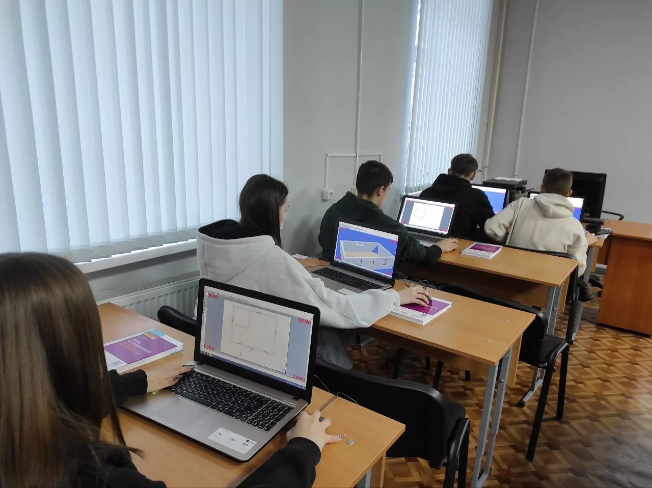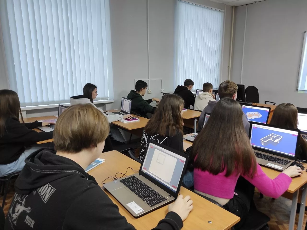 За время реализации проекта в течение 4 месяцев ребята попробовали себя в роли настоящих проектировщиков, работали с отечественными программами Ренга (Renga) и АrCon для трехмерной визуализации промышленных и гражданских зданий, а также интерьеров помещений.