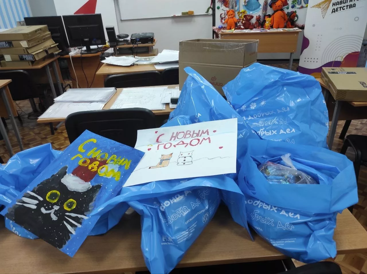 ️ В общей сложности командой проекта были переданы 20 сладких новогодних подарков, более 25 ёлочных украшений и открыток.