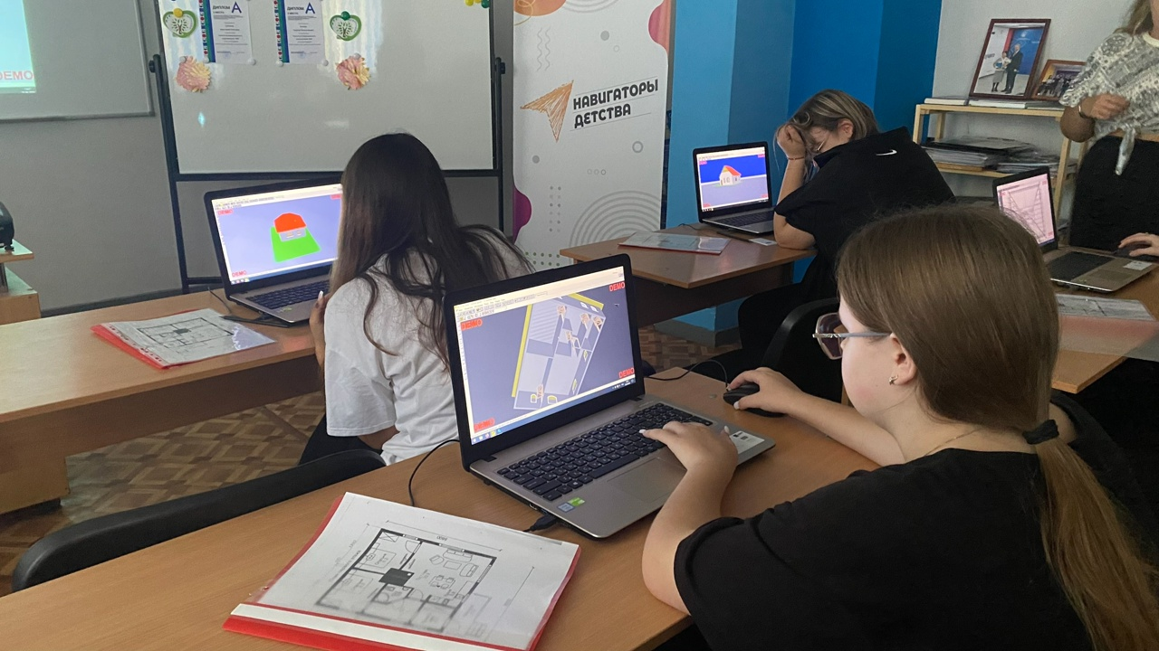 Школьники попробовали себя в роли проектировщиков малоэтажного жилого дома, работая в программе Аркон (Arcon), предназначенной для профессионального дизайна, проектирования и трехмерной визуализации. Эта программа позволяет создать детально проработанный план помещения и увидеть созданное помещение в объемном изображении. Ребята создали модель одноэтажного жилого дома со скатной крышей на ландшафтной подложке с внутренними помещениями, расставили мебель и элементы благоустройства.