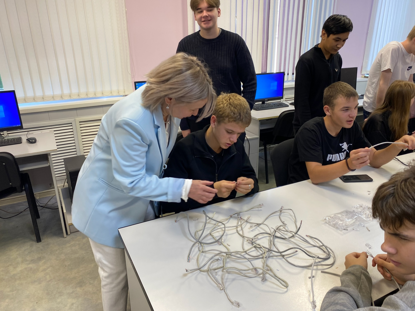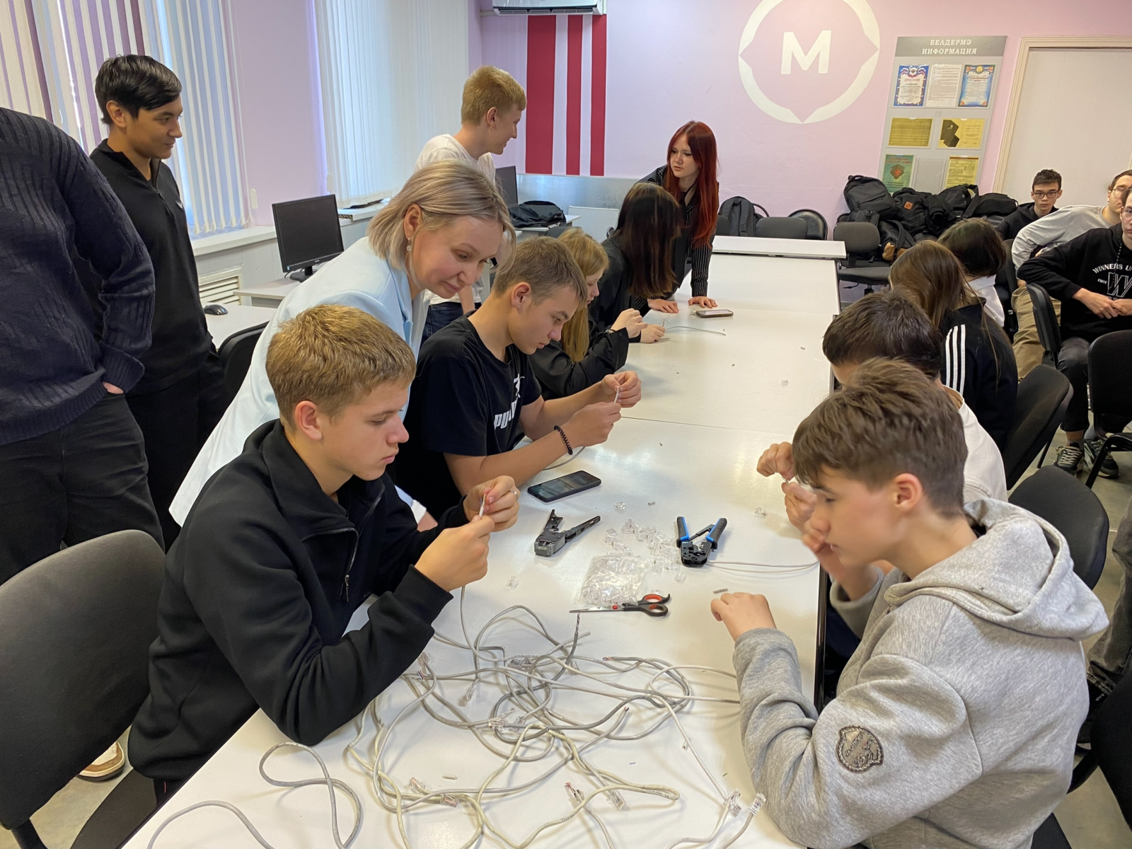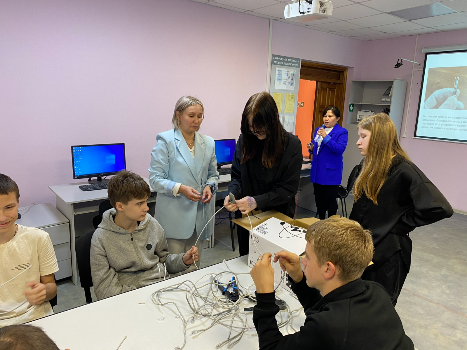 Под руководством наставника проекта С.М.Хамидуллиной школьники применили навыки работы с кабелями, тестерами, устройствами для работы с кабелями.