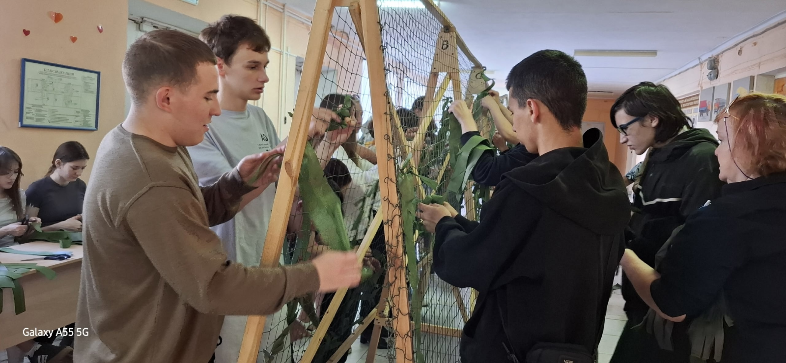 При поддержке депутата Совета городского округа город Салават Сафиной Гузель Равиловны в фойе колледжа была размещена волонтерская площадка по плетению маскировочных сетей. Студенты всех курсов приняли участие и с полной ответственностью подошли к делу. За два дня было изготовлено 8 маскировочных сетей. Это большая поддержка для наших земляков в зоне СВО!