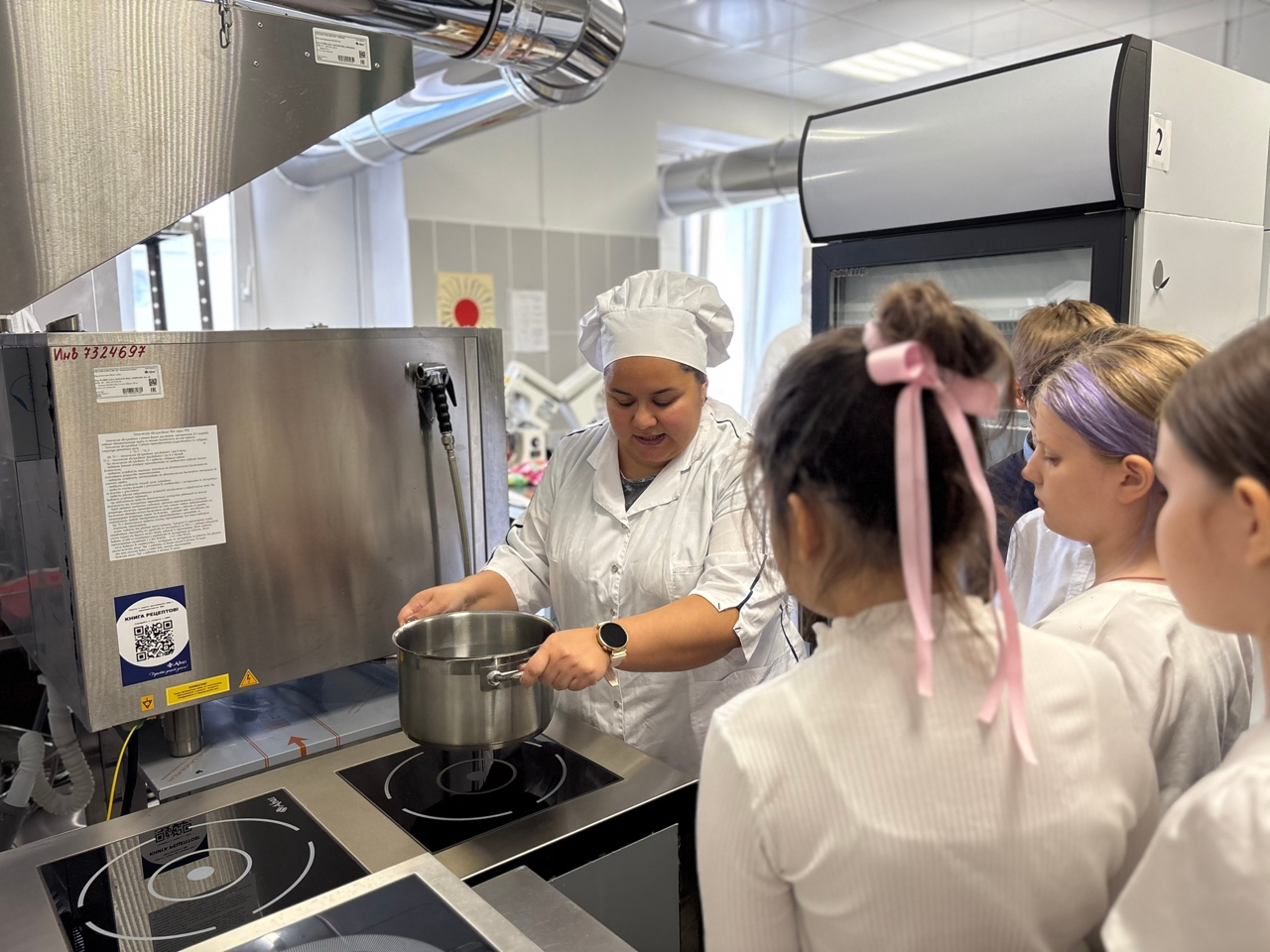 Повара: Это была настоящая фабрика вкуса! Школьники не только продегустировали вкусную продукцию, приготовленную нашими студентами, но и узнали о тонкостях работы повара и кондитера.