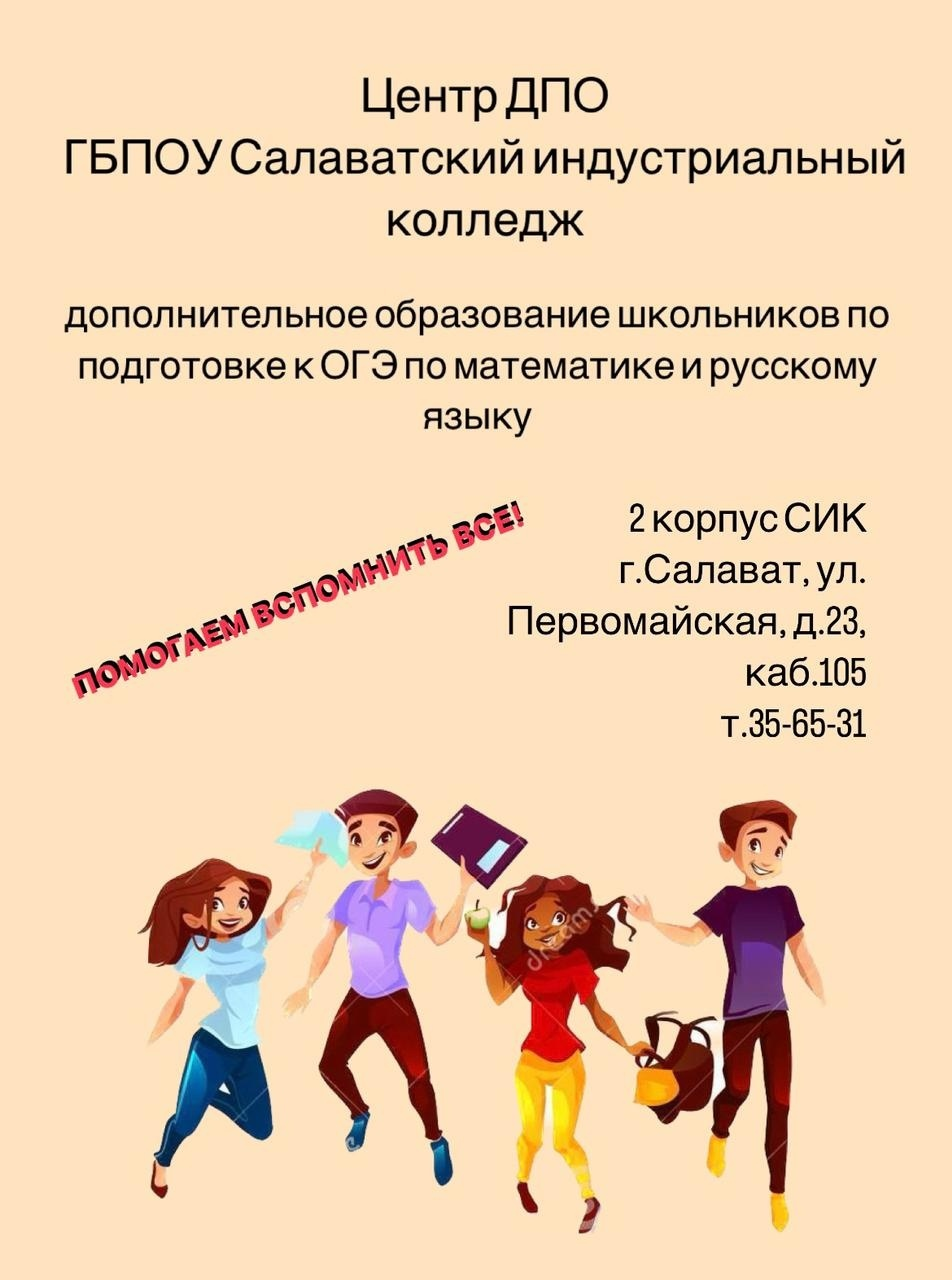 Дополнительное образование школьников по подготовке к экзаменам ОГЭ по математике и русскому языку в Центре ДПО ГБПОУ Салаватского индустриального колледжа.